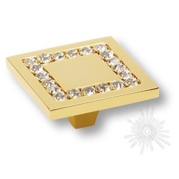 Ручка кнопка 0771-030-3, материал Латунь, отделка Золото Кристаллы Swarovski, 50*50*24 мм